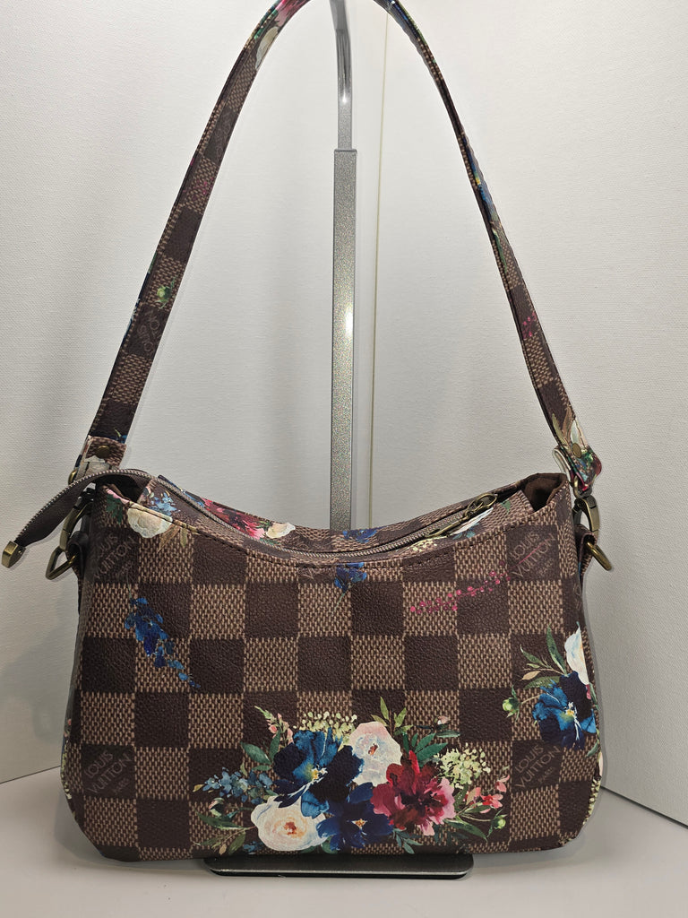Brown Checker LV Floral Shoulder Bag