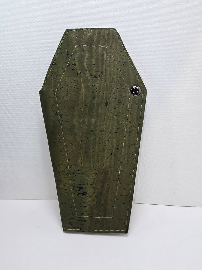 8 card slots, 2 cash pockets, 1 large zipper pocket with magnetic closure